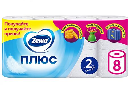Туалетная бумага Zewa Плюс Белая 8 рулонов 2 слоя доставка