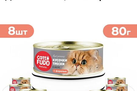 Влажный корм для кошек Cattofudo Holistic Кусочки трески с форелью в желе 8*80г доставка