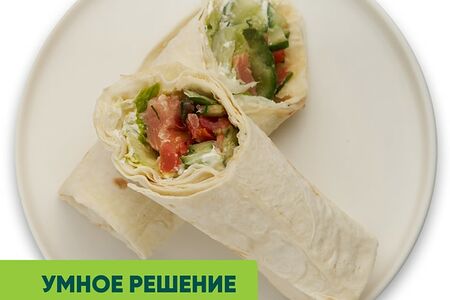 Сэндвич-ролл - удобный формат для быстрого и сытного перекуса, который можно взять с собой или съесть на бегу. В пшеничную тортилью, смазанную нежным творожным сыром с ароматным укропом и пикантным зелёным луком, завёрнуты кусочки слабосолёной кеты, хрустящие листья салата айсберг и свежие овощи - помидор и огурец. Вы можете есть блюдо холодным, а можете немного разогреть на сухой сковороде или в микроволновой печи. Готовая еда Умное решение от Vprok.ru - это по-домашнему вкусные блюда, приготовленные без добавления искусственных консервантов, красителей и усилителей вкуса. Попробуйте все и выберите свои любимые!