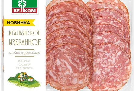 Колбаса Велком Итальянское избранное Сальчичон+Салями+Римини сырокопченая нарезка 150г доставка
