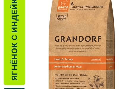 Сухой корм для щенков Grandorf Junior Medium & Maxi для юниоров c ягненком и индейкой 10кг доставка
