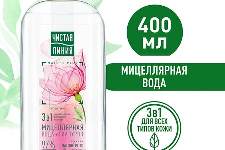 Мицеллярная вода Чистая Линия 3в1 для всех типов кожи с гиалуроном и экстрактом розы успокаивает кожу 400мл доставка