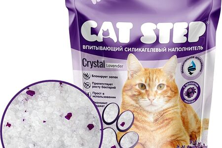 Наполнитель для кошачьего туалета Cat Step Lavender 7.6л - неорганические гранулы с добавлением цветных фиолетовых кристаллов. Благодаря своей пористой структуре они моментально впитывают влагу, полностью уничтожают запахи, препятствуют размножению и развитию бактерий и грибков. При контакте с жидкостью в гранулах активируется лавандовый ароматизатор. Наполнитель не пылит, не прилипает к лапкам и не царапает нежные подушечки. Он не требует постоянного контроля и уборки, упаковки в 7.6 л хватает в среднем на 2 месяца. Вам нужно лишь высыпать ее содержимое в чистый и сухой лоток, периодически удалять твердые отходы и перемешивать гранулы. Нельзя смывать в канализацию.