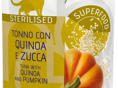 Влажный корм для кошек Monge Supreme sterilized cat из тунца с киноа и тыквой 80г - это натуральное питание для взрослых стерилизованных кошек и кастрированных котов. В его основе лежит мясо тунца, который является источником белка высокой пищевой ценности. Корм обогащен такими суперфудами, как киноа и тыква, а также витамином Е и ФОС. Все ингредиенты приготовлены на пару. Не содержит злаков, ГМО, искусственных красителей и ароматизаторов. Суточная норма кормления: для кошки весом 4 кг - 2-3 пауча.