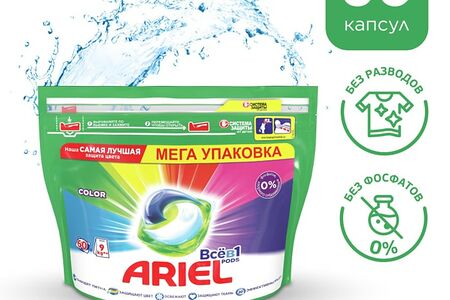 Капсулы для стирки Ariel Все-в-1 60шт имеют уникальный многосекционный дизайн, позволяющий надежно сохранять компоненты в отдельных секциях капсулы до начала стирки, и обладают высококонцентрированными очищающими свойствами. Инновационная пленка капсул для стирки Ariel полностью растворяется при контакте с водой, позволяя мощным технологиям удалять различные виды пятен. Одна капсула содержит необходимую для стирки дозу лучшего жидкого средства от Ariel для безупречного отстирывания и яркости цвета. Благодаря уникальным технологиям и природным энзимам в составе Ariel Всё в 1 прекрасно отстирывает сложные пятна даже при температуре 20°C. Не содержат кондиционер для белья. Все активные компоненты полностью биоразлагаемы.