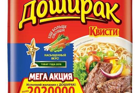 Сведения о составе: Лапша: пшеничная мука в/с, пальмовое масло, модифицированный крахмал, соль, лук сушеный, сушеная ламинария (порошок), клейковина, эмульгатор-загуститель, краситель "бета-каротин", комплексная пищевая добавка "Премикс". Приправа из сушеных овощей: соевый текстурат, лук, водоросли сушеные (хлопья). Бульон-приправа: соль, усилитель вкуса (глутамат натрия), ароматизатор идентичный натуральному (говядина), порошок соевого соуса, глюкоза, перец красный, перец черный, чесночный порошок, паприка (порошок)Пищевая ценность: 400,8,17,54Условия хранения: 30Срок годности в днях: 365Страна изготовления: РоссияСведения об упаковке: ПакетПроизводитель: Доширак Коя