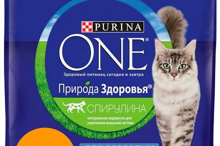 Сухой корм для кошек Purina ONE Природа здоровья с курицей и спирулиной 180 г — сбалансированное питание, которое поддержит здоровье и красоту питомца. Разработанный экспертами состав обеспечивает кошку необходимыми витаминами и питательными веществами с учетом замедленного после стерилизации или кастрации метаболизма. Оптимальный уровень белка и жира помогает животному сохранить здоровый вес, при этом чувствовать себя энергичным и сильным. Полученная из морских водорослей спирулина укрепляет иммунитет, а минеральный комплекс поддерживает здоровье мочевыделительной системы. Небольшие хрустящие кусочки эффективно и аккуратно воздействуют на зубы и десны, очищая их от налета и зубных отложений.