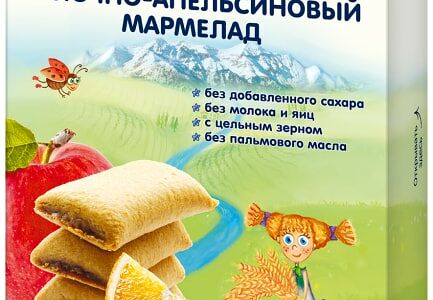 Сведения о составе: Яблочно-апельсиновый мармелад* 35% (яблочное пюре*, концентрированный яблочный сок*, концентрированный апельсиновый сок*, растительные волокна моркови*, концентрированный морковный сок*, натуральный ароматизатор – апельсиновое масло), цельнозерновая спельтовая мука*, концентрированный яблочный сок*, подсолнечное масло*, гречневая мука*, рисовая мука*, цельнозерновая овсяная мука*, разрыхлитель (гидрокарбонат натрия), антиокислитель (концентрат смеси токоферолов) *органическое сельское хозяйство соответствует законодательству ЕС (Регламент ЕС №2018/848) Может содержать следы яиц, молока, сои и ореховПищевая ценность: 400,5,11.6,65Условия хранения: 25,0Срок годности в днях: 456Страна изготовления: БельгияСведения об упаковке: Картонная упаковкаПроизводитель: C.R.V. Corthouts NV