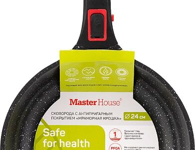 Сковорода Master House Шеф Леонардо 24см - идеальный выбор для тех, кто любит готовить каждый день с удовольствием! Она изготовлена из литого алюминия - прочного и легкого материала. Благодаря двухслойному антипригарному покрытию, устойчивому к истиранию, продукты не пригорают, а сковорода легко отмывается и позволяет готовить блюда без масла. Высокие удобные бортики позволяют легко перемешивать и переворачивать пищу, а толстое дно способствует равномерному распределению жара. Съемная ручка не нагревается, что делает сковороду безопасной в использовании. Подходит для всех видов плит, кроме индукционных. Без ручки можно использовать в духовке. Можно мыть в посудомоечной машине.