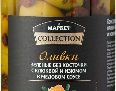 Оливки Market Collection зеленые с клюквой и изюмом в медовом соусе 320г доставка