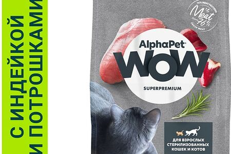 Сухой корм для стерилизованных котов и кошек AlphaPet Wow SuperPremium с индейкой и потрошками 1.5кг доставка