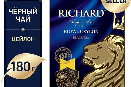 Чай черный Richard Royal Ceylon листовой 180г из коллекции Королевской классики - это блистательный купаж, достойный коронованных особ. Он составлен по рецептам королевского двора из отборных сортов байхового черного чая, выращенного на высокогорных плантациях Цейлона. Напиток получается терпким, бодрящим, с легкими сладковатыми нотками и тонким медовым ароматом. Чтобы почувствовать всю глубину безупречного вкуса, рекомендуется заливать свежим крутым кипятком и настаивать в течение 3-4 минут.