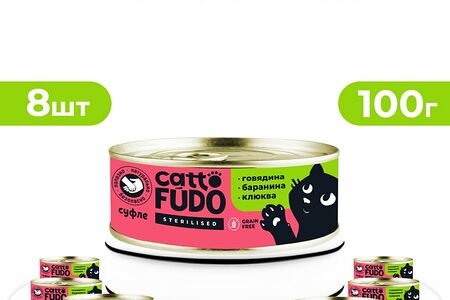 Влажный корм для кошек Cattofudo суфле Говядина с бараниной и клюквой 8*100г доставка