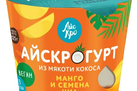 Десерт АйсКро Айскрогурт на кокосовой основе с манго и семенами чиа 125г доставка