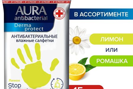 Салфетки влажные Aura антибактериальные 15шт в ассортименте доставка