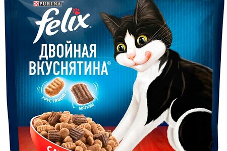 Любопытство вашего кота заложено природой! И бренд Felix снова придумал, как его удовлетворить. Представляем Felix "Двойная Вкуснятина" — сухой корм для кошек, который полностью соответствует потребностям вашего озорника. Восхитительное сочетание двух текстур в одной упаковке: хрустящие гранулы смешаны с мягкими кусочками для создания невероятного вкуса, перед которым невозможно устоять! Широкий ассортимент позволит коту наслаждаться разнообразием мясных или рыбных вкусов с соблазнительными ароматами. Felix "Двойная Вкуснятина" — первый сухой корм, созданный под брендом Felix для находчивого кота, который знает толк во вкусной еде. Не содержит искусственных красителей и консервантов. Сочетание хрустящих гранул с мягкими и нежными кусочками. 100% сбалансированный полный рацион. Содержит витамины А, D, Е и таурин. Совет от Felix: вы пробовали комбинировать сухой и влажный корм в ежедневном рационе вашего кота? Попробуйте! Ведь теперь Felix доступен в обоих рационах.