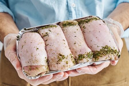 Окорочка куриные фаршированные сыром и грибами– охлажденный полуфабрикат, приготовленный профессиональными поварами. В его составе нет ничего лишнего, только свежее куриное мясо, сыр, шампиньоны, специи и укроп. Изделия можно обжарить на сковороде, запечь в духовом шкафу или приготовить на гриле – в любом случае получится аппетитно, вкусно и сочно! Блюдо отлично подойдет как для обычного семейного обеда, так и для праздничного стола. Обратите внимание: в комплект уже входит одноразовая форма для запекания, которая сделает процесс приготовления еще более удобным и избавит вас от мытья лишней посуды. Правильная температура в кулинарном цеху и автомобилях доставки позволяет сохранить свежесть, полезные свойства и исключительные вкусовые качества продукции.