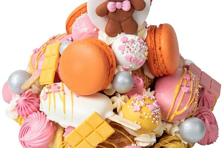 Сведения о составе: Масло сливочное (пастеризованные сливки), сахар белый, продукты яичные пастеризованные, мука пшеничная хлебопекарная в/с, молоко питьевое, шоколадная глазурь (сахар, сухое обезжиренное молоко, какао-масло, соевый лецитин, ароматизатор – ваниль), молоко цельное сгущенное с сахаром варенное (молоко цельное, сахар белый), крем сливочный «сливки для взбивания» (сливки нормализованные), мука миндальная, паста для лепки (сахар, глюкозный сироп, какао-масло, картофельно/крахмальная мука, пшеничный крахмал), кефир 3,2% (молоко нормализованное, закваска на кефирных грибках), масло подсолнечное рафинированное дезодорированное, шоколад белый (сахар, какао-масло, сухое молоко, эмульгатор подсолнечный лецитин, ароматизатор натуральный (ваниль), шарики сахаристые (сахар, мука, рисовый крахмал), какао-порошок, коньяк, шоколадная глазурь (какао тертое, сахар, какао-масло, соевый лецитин, ароматизатор – ваниль), ром, смесь для окрашивания (вода, сахар, красители (синий блестящий, черный блестящий), загустители (камедь гуаровая, камедь рожкового дерева), регулятор кислотности – лимонная кислота), патока крахмальная, ароматизатор натуральный – ваниль, разрыхлитель – гидрокарбонат натрия, загуститель –желатин пищевой, соль поваренная пищевая, регулятор кислотности – лимонная кислота, красители пищевые (куркумин, каротин, диоксид титана, серебро), загуститель – агар, крахмал кукурузный, консервант – сорбиновая кислотаПищевая ценность: 480,6.1,31.9,42.1Условия хранения: -18,-18Срок годности в днях: 30Страна изготовления: РоссияСведения об упаковке: Картонная коробкаПроизводитель: Свит Рич