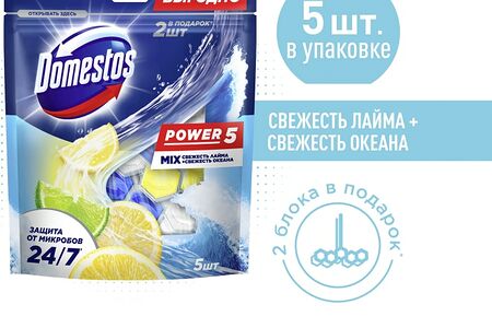 Блок туалетный Domestos Power 5 Свежесть океана свежесть лайма 5*50г доставка