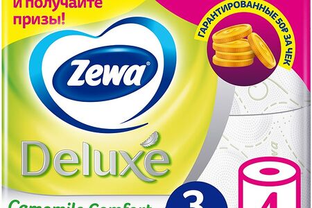 Туалетная бумага Zewa Deluxe Camomile Comfort 4 рулона 3 слоя - это мягкая и очень прочная туалетная бумага со специальными впитывающими подушечками и нежным ароматом ромашки, созданная для деликатного очищения и особого комфорта всех членов семьи. Белые листы с цветным тиснением легко отрываются по линии перфорации, размер каждого листа 9.5*13см, всего в рулоне 145 (+/- 3) листов, общая длина 18.8м. Одобрена европейскими дерматологами. В упаковке - 4 рулона.