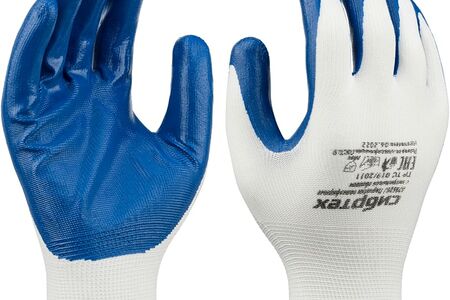 Перчатки Сибртех полиэфирные с синим нитрильным покрытием размер 9 13 класс вязки доставка