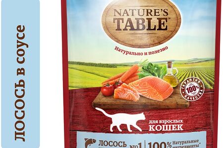 Корм для кошек Natures Table Лосось в соусе 85г высококачественный продукт для кошек любых пород, который не только превосходно утолит голод, но и насытит кошачий организм всеми необходимыми питательными веществами. Кусочки свежего лосося в аппетитном соусе с добавлением подсолнечного масла, рыбьего жира, натуральных овощей, мяса курицы и говядины изысканное и полезное сочетание для самых привередливых питомцев. И главное: никаких красителей, ароматизаторов, консервантов и ГМО. Блестящая шерсть, здоровая кожа, отличное пищеварение, блеск в глазах все, что нужно вашей кошке, чтобы оставаться здоровой, подвижной, энергичной долгие годы!