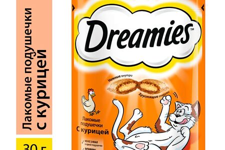 Лакомство для кошек Dreamies подушечки с курицей 30г доставка