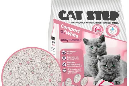 Наполнитель для кошачьего туалета Cat Step Compact White Baby Powder комкующийся минеральный 5л доставка