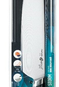 Серия ножей Storm имеет кованую гарду, которая делает нож прочным и сбалансированным, а работу с ним легкой и удобной. Лезвие ножа Storm выполнено из нержавеющей стали и долго сохраняет острую заточку. Специальная форма рукоятки и её мягкое, приятное на ощупь покрытие не позволяют ножу выскальзывать из руки во время использования. Нож предназначен для чистки овощей, фруктов и нарезки продуктов. Длина лезвия 20 см. Материалы изготовления: нержавеющая сталь 3Cr14, нержавеющая сталь 420, пищевой пластик PP, пищевой пластик TPR.