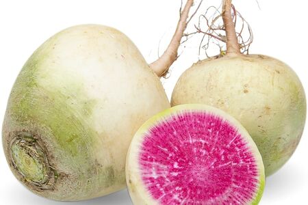 Редька Арбузная 0.5-0.7кг полезный овощной гибрид, отличающийся сладким вкусом с горькими пикантными нотками. Имеет крупные округлые плоды с яркой розовой мякотью и бело-салатовой кожурой. Богата витаминами группы В, ретинолом, аскорбиновой и салициловой кислотой. Улучшает работу сердечно-сосудистой системы, а благодаря высокому содержанию пищевых волокон нормализует работу желудочно-кишечного тракта и выводит токсины. Широко применяется в кулинарии: из корнеплода готовят салаты, добавляют в овощное рагу, окрошку и другие холодные супы, овощные коктейли и смузи. Подается в тушеном или запеченном виде, в том числе, в качестве гарнира. Хорошо сочетается с мясом, зеленью, луком и орехами.