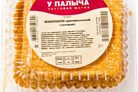 Торт У Палыча Наполеон оригинальный 400г удовлетворит запросы даже самых искушенных гурманов. Ведь давно известно: чем больше тончайших коржей слоеного теста в этом десерте, тем он качественнее и вкуснее! А здесь их точно не меньше двенадцати! И каждый промазан слоем нежного сливочно-заварного крема. Декорирован торт традиционно - сверху и по бокам обсыпан мелкой крошкой от слоеных коржей. Изделие хорошо режется, сохраняет форму. Рекомендуется хранить в холодильнике. Один торт - это примерно 4 порции.