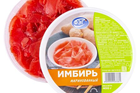 Имбирь ФЭГ маринованный 400г – тонкие, нежные и в меру острые ломтики имбиря, замаринованные с добавлением специй. Имбирный корень богат витаминами С, В1 и В2, калием, кальцием, железом, марганцем, фосфором, антиоксидантами и прочими ценными веществами. Он помогает укрепить иммунитет и быстро побороть простуду, благотворно воздействует на состояние сосудов, оказывает выраженное успокаивающее и антимикробное действие. Продукт хорошо сочетается с тушеным мясом, рисом, традиционной восточной лапшой, блюдами японской кухни, рыбой. «ФерЭльГам» (ФЭГ) – это современная, динамично развивающаяся компания, которая контролирует качество своей продукции от поля до прилавка.