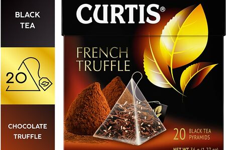 Чай черный Curtis French Truffle в пирамидках - это благородный черный среднелистовой чай с элегантным ароматом французского шоколадного трюфеля из десертной коллекции Curtis. При заваривании напиток приобретает коричневато-медный оттенок и бархатное послевкусие со сливочными нотками без типичной горчинки. Объемная форма пирамидки позволяет чайным листьям полностью раскрыться и отдать свой аромат. Такой чай рекомендуется заливать крутым кипятком и заваривать в течение 5 минут (это не мелкий чай в пакетиках, поэтому времени на приготовление ему потребуется чуть дольше).