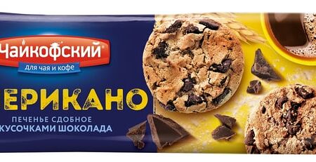 Печенье Чайкофский Американо с кусочками шоколада 145г доставка