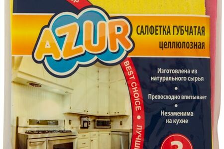 Набор салфеток Azur 14*16см 3шт – отличное решение для влажной уборки самых разных поверхностей: кухонных столешниц, мебели, плитки, стекол, зеркал и т.д. Салфетки произведены из натурального сырья: целлюлозы и хлопка. Они имеют особую губчатую структуру, вследствие чего отлично поглощают влагу, легко выжимаются и быстро сохнут. Изделия не оставляют разводов и ворсинок, не ломаются и не крошатся при высыхании, подходят для многократного использования. Благодаря оптимальному размеру (14*16см) они удобно лежат в руке. Салфетки созданы с заботой о природе: после утилизации они полностью разлагаются. В упаковке 3 штуки.