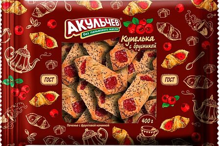 Печенье Акульчев Купелька с брусникой 400г доставка