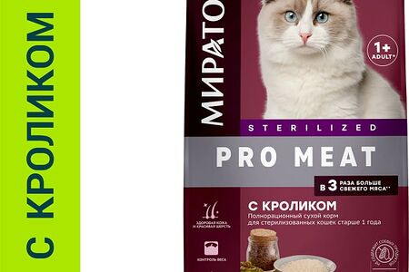 Сухой корм для стерилизованных кошек Мираторг Pro Meat с кроликом 10кг доставка