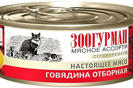 Влажный корм для кошек Зоогурман Мясное ассорти Говядина отборная 100г - это высококачественное питание для взрослых кошек всех пород. В его основе лежит 100% говядина и субпродукты, которые обеспечивают ежедневную потребность вашего питомца в белке. Благодаря правильно сбалансированному составу корм обеспечит кошке необходимый набор макро- и микроэлементов, аминокислот и минералов. Он придает животному энергию, укрепляет иммунную систему, делает шерсть блестящей и шелковистой, а кости и суставы крепкими. Не содержит сою, ГМО, искусственные красители, усилители вкуса, мясокостную и перьевую муку. Суточная норма кормления: 25-35 гр корма на 1 кг веса кошки.