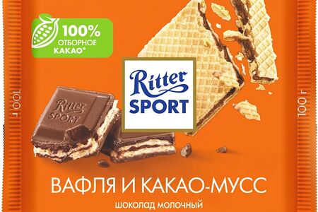 Шоколад Ritter Sport Молочный с начинкой какао и вафли 100г доставка