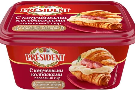 Сыр плавленый President с копчеными колбасками 45% 400г доставка