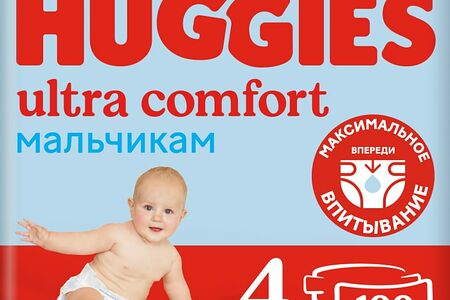 Подгузники Huggies Ultra Comfort для мальчиков 8-14кг 4 размер 100шт с тремя впитывающими каналами созданы специально для мальчиков. Впитывающий слой на этих подгузниках расположен с учетом анатомических особенностей мальчиков (ближе к переду), что позволяет максимально быстро впитывать влагу и распределять ее внутри подгузника, оставляя кожу сухой 24/7. Широкий мягкий эластичный поясок подгузников позволяет зафиксировать подгузник на животике, сохранив максимум комфорта и свободы движения. Он не топорщится на спинке, повторяя все изгибы тела, и не врезается в кожу. Уникально расположенные впитывающие каналы быстро отводят жидкость и распределяют ее внутри подгузника, препятствуя его набуханию и провисанию, сохраняя максимальную свободу движения. Анатомическая форма подгузника между ножками обеспечивает лучшее ощущение комфорта. Двойные барьерчики вокруг ножек защищают от протеканий. Два ярких дизайна для мальчиков в одной упаковке.