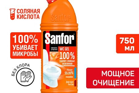 Средство чистящее для унитаза Sanfor WC Gel Super Power 750мл доставка