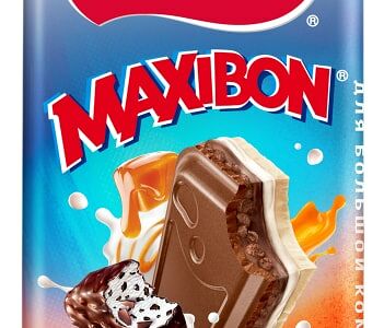 Восхитительный вкус мороженого Maxibon и карамели в эксклюзивной шоколадной плитке. Двухслойная начинка со вкусом мороженого Maxibon и карамели, два вида шоколада — белый и молочный — всё это идеально дополняется хрустящим печеньем в каждой дольке. Откройте для себя уникальное сочетание контрастных вкусов и текстур с "Россия — Щедрая душа"! Maxibon! Неповторимый внешний вид шоколадной плитки, состоящей из больших долек, идеально подойдет, чтобы побаловать себя или разделить перекус в большой компании.