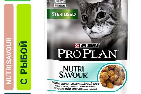 Влажный корм для стерилизованных кошек Pro Plan Nutri Savour Sterilised кусочки в желе с океанической рыбой 85г доставка