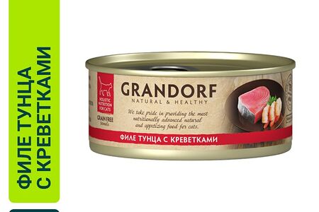 Влажный корм для кошек Grandorf Филе тунца с креветками 70г доставка