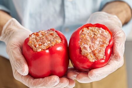 Перец фаршированный с курицей и свининой – охлажденный полуфабрикат, приготовленный нашими поварами. Отборный сладкий перец тщательно промывают, аккуратно очищают от семян и внутренних перегородок, а затем начиняют фаршем из свежего мяса, овощей и риса. Оптимально подобранный букет специй позволяет подчеркнуть отменный вкус ингредиентов. Вам осталось лишь потушить перцы или запечь их в духовом шкафу – и можно звать домашних к столу! Полуфабрикаты от Vprok.ru – отличное решение для людей, живущих в активном ритме. С ними вы сможете питаться вкусно и полноценно, но при этом сэкономите массу времени и сил. Правильная температура в кулинарном цеху и автомобилях доставки позволяет сохранить свежесть, полезные свойства и исключительные вкусовые качества продукции.