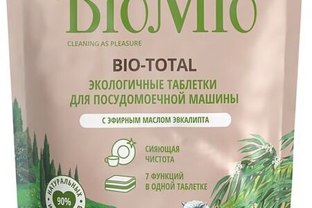Таблетки для посудомоечных машин BioMio Bio-Total 7в1с маслом эвкалипта 12шт эффективно удаляют загрязнения любой сложности даже при низкой температуре и устраняют неприятные запахи, деликатно воздействуя на посуду из любого материала. ЭКО-таблетки на 90% состоят из натуральных компонентов и не содержат фосфатов, агрессивных ПАВ, SLS/SLES, EDTA, DEA, хлора, искусственных ароматизаторов. В состав таблеток входят: ополаскиватель, придающий посуде дополнительный блеск, и соль, предотвращающая образование известкового налета на внутренних деталях посудомоечной машины. Благодаря биоразлагаемой формуле таблетки не наносят вред окружающей среде. Они быстро растворяются, поэтому подходят даже для коротких программ. BioMio линейка эффективных и безопасных ЭКО-средств, с которыми повседневные домашние дела будут дарить вам только положительные эмоции. Произведено в Дании.