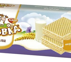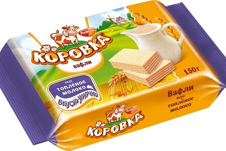Вафли Коровка Топленое молоко 150г производятся на одном из крупнейших кондитерских предприятий России Рот Фронт. Это классические изделия, представляющие собой несколько слоев хрустящих вафельных коржей, промазанных сливочной кремово-помадной начинкой. У них воздушная структура и насыщенный аромат топленого молока. Нежные, тающие во рту вафельные квадратики - прекрасное дополнение к семейному чаепитию или утренней чашечке кофе. Вафли не требуют особых условий хранения, поэтому их можно взять с собой на работу или в дорогу.