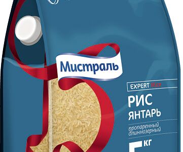 Рис Мистраль Янтарь пропаренный длиннозерный 5кг идеально подходит для приготовления вкусных и полезных блюд для всей семьи. Длинные зернышки этого риса имеют необычный янтарный цвет, полученный в процессе обработки паром. В готовом виде они становятся белоснежными, приобретают приятный вкус и прекрасно сохраняет свою форму. Рисовая крупа отлично сочетается с мясом, рыбой, птицей и овощами, легко усваивается, обогащает организм витаминами и минеральными веществами. Стоит отметить, что в ее составе нет глютена растительного белка, способного вызвать аллергические реакции. Упаковки объемом 5 кг хватит на длительное время, а инновационная система SMART CUP обеспечит герметичность при хранении. Продукция ТМ Мистраль отличается стабильно высоким качеством, существенно превышающим стандарты ГОСТ. Все сырье, перед тем как попасть в производственные цеха, тщательно проверяется в лаборатории. Не содержит ГМО.