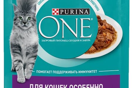 Влажный корм для кошек Purina ONE Индейка-Утка-Морковь 75г - это сбалансированное полнорационное питание для взрослых кошек. Он разработан ветеринарными врачами и диетологами, что гарантирует отличный вкус и пользу. Отборные ингредиенты способствуют поддержанию здоровой микрофлоры кишечника. Индейка и утка являются богатыми источниками качественного белка, а клетчатка поддерживает нормальное пищеварение. Благодаря добавлению Омега-3 и Омега-6 корм обеспечивает вашей кошке блестящую и гладкую шерсть. Витамин Е известен как природный антиоксидант, который защищает организм вашего питомца от неблагоприятного воздействия окружающей среды. Рекомендуемая суточная норма кормления: для кошки весом 4 кг - 3 пакетика.